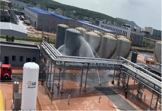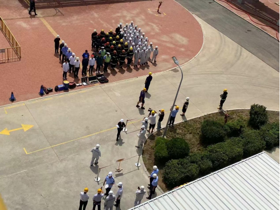公用工程部两名外操在巡检过程,发现V0601A甲醇罐罐壁阀处泄漏 ,按照生产安全事故综合应急预案进行处置。在应急处置的过程中发生二次险情,甲醇泄漏起火,液体流淌造成火势蔓延,企业无法自救。企业负责人立即按程序上报区应急值守中心。救援力量到达后,成立临时指挥部,各救援小组立即按照指挥部作战命令展开行动。依次开展了现场警戒、伤者救援、稀释抑爆、个体防护、危险废物收集、环境采样监测等环节演练。各应急救援队分工明确、各司其职,紧密配合、协同作战,***终火势被成功遏制,人员得到及时救助,现场环境恢复到安全状态,有效避免事故扩大及次生灾害发生,演练取得了圆满成功。